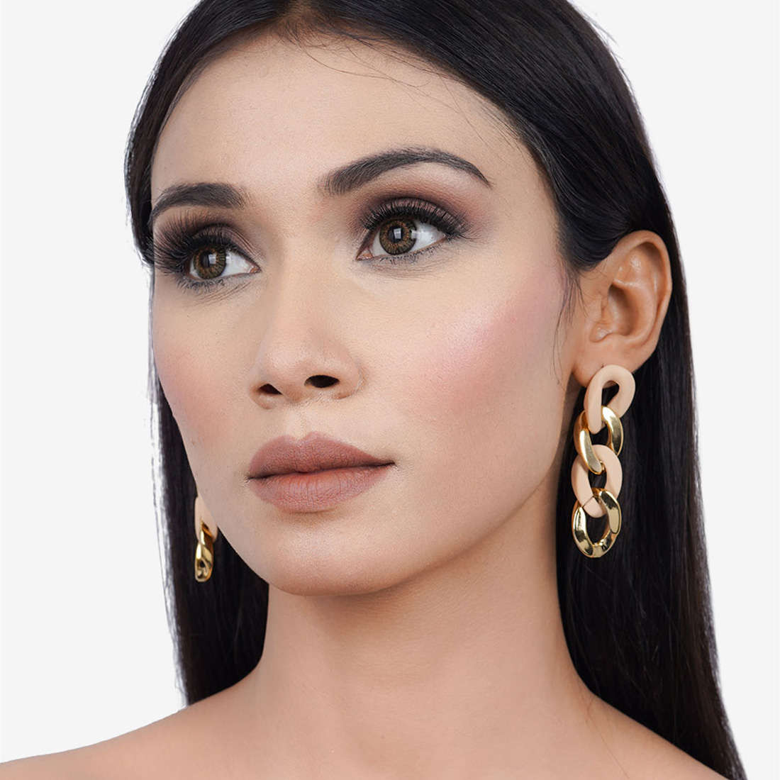Beige Gold Curb Chain Earrings