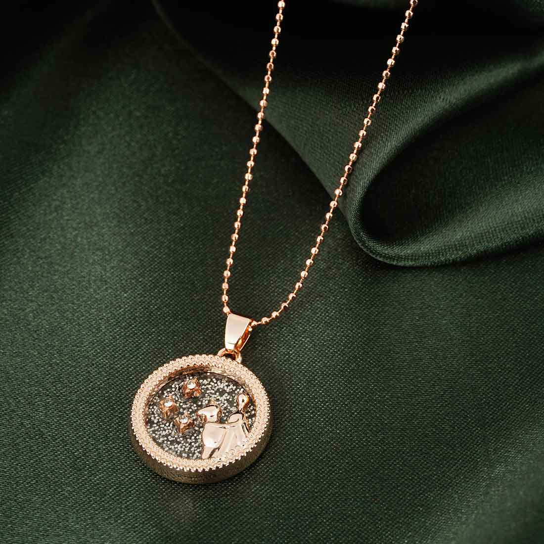 Zodiac charms are a fantastic way to display your personality while also demonstrating your love of the stars! Virgo Pendant Chain Zodiac Necklace is a beautiful necklace with a zodiac pendant on our ball chain necklace. This simple rose gold zodiac pendant is in your future, and we don't need a horoscope to tell you that. This zodiac necklace showstopper will keep you gleaming around the clock, whether from 9 to 5 or after 5 dressing.