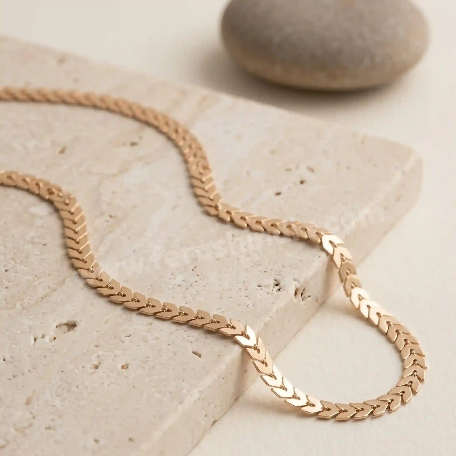 Wheat Chain Gold Necklace is a beautiful minimalistic gold wheat necklace brought to you by the label Ferosh. This gold chain necklace is exquisitely fashioned in a wheat chain design. Team up with any of your looks to have a Voguish ensemble. This chain necklace will match exquisitely with any outfit of your liking so ladies don’t waste your time, grab your own now.