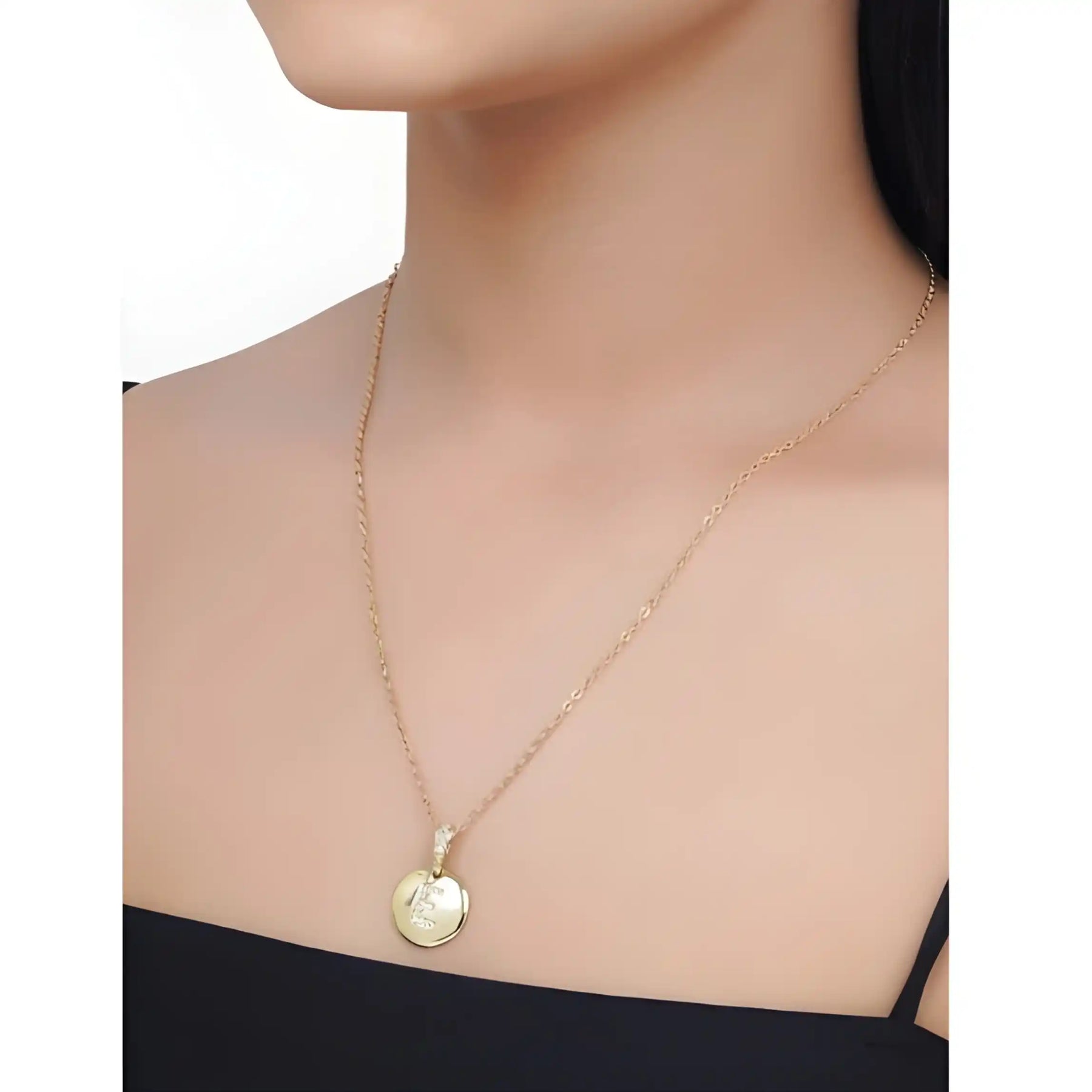 This Crystal Studded Alphabet E Gold Coin Necklace was specifically chosen by hand from a handpicked assortment of beautiful High-end Fashion Jewellery and is provided to you by Ferosh. Our favourite fashion bloggers and girls have now perfected the technique of alphabet necklaces. This stylish alphabet necklace in gold will definitely improve your neckline with its strands of gold-plated simple charmed and linked jewellery. This alphabet pendant necklace is a no-brainer for the evening, but we also believe the alphabet necklace looks surprisingly stylish with clean-cut separates, like a t-shirt.
